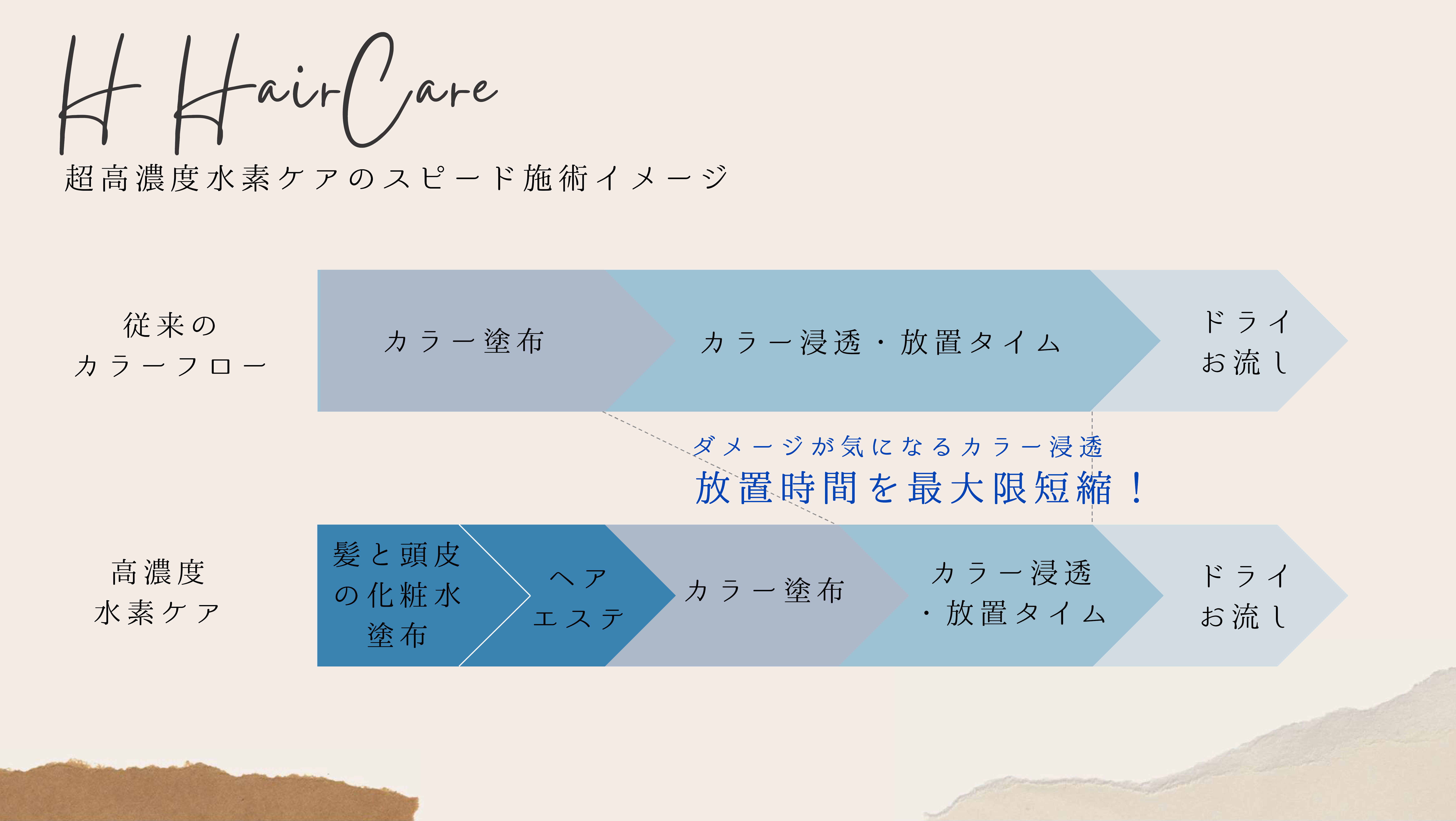 従来のヘアカラーの工程の中に、このケアを組み込むかたちとなり、