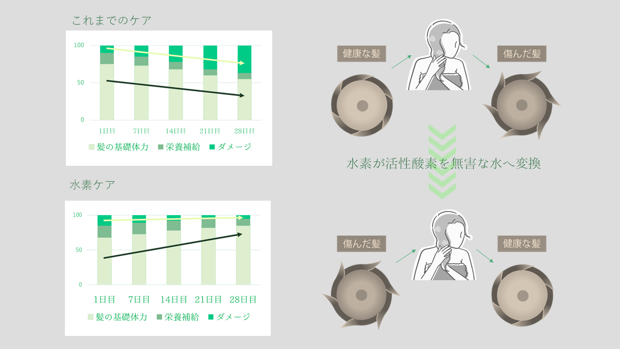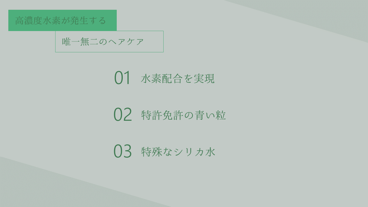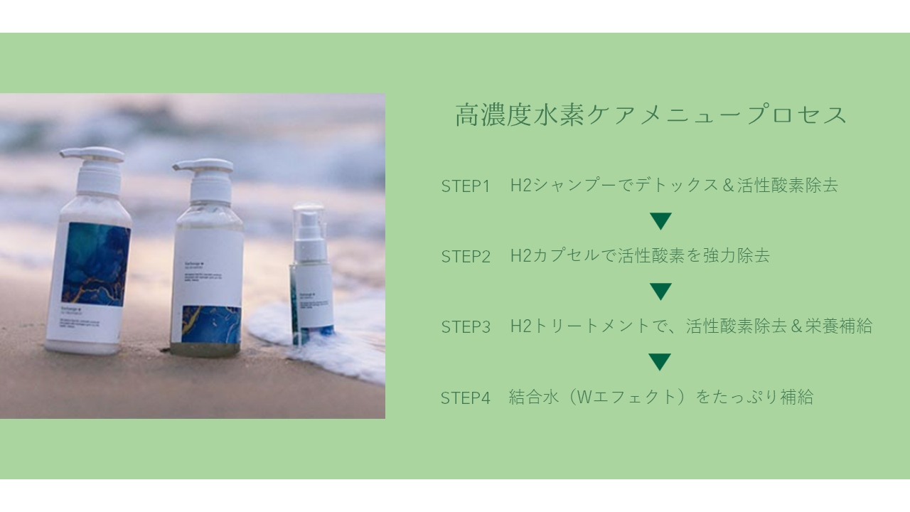 エビデンスに基づいた高濃度水素が発生する特別なヘアケアシリーズを使用させていただきます。