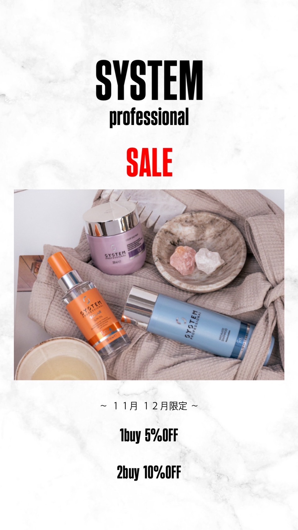 11月.12月、system professionalの商品が全て割引となります。