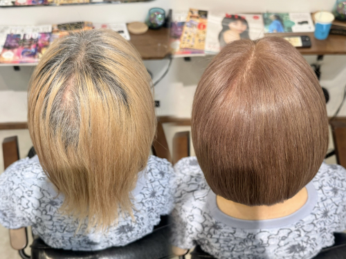 白髪をやさしく馴染ませながら立体感を出します。