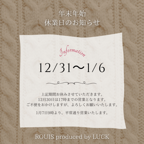 ROUIS produced by LUCK(ルイプロデュ―スドバイラック)よりお知らせです☆